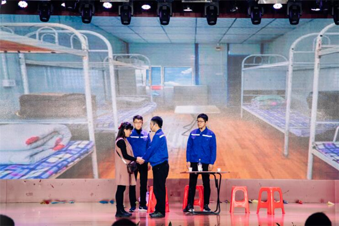 交通公司帶來(lái)的情景劇《筑路人》,有安徽水利蕪黃高速項目一群可愛(ài)的筑路人,他們以情景劇的形式演繹了一個(gè)又一個(gè)不平凡的故事。為實(shí)現2021年安徽省“縣縣通高速”的完美收官,他們放棄自己與家人團聚的機會(huì ),用青春和智慧、用汗水和淚水在平凡的崗位上干出了不平凡的業(yè)績(jì)。