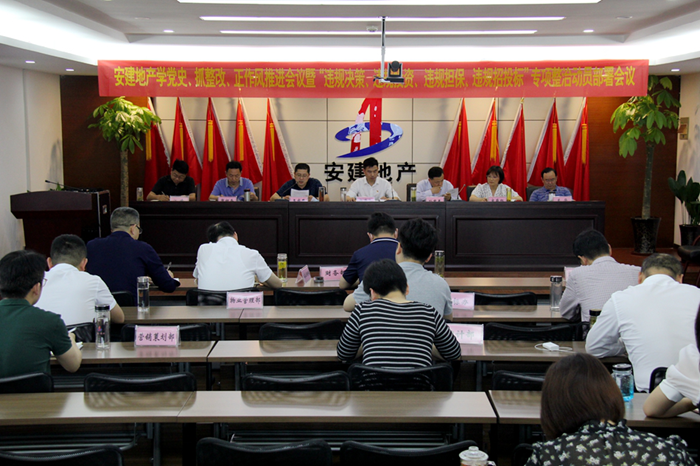 5月27日,安建地產(chǎn)在安建國際大廈21樓會(huì )議室召開(kāi)學(xué)黨史、抓整改、正作風(fēng)推進(jìn)會(huì )議暨“違規決策、違規投資、違規擔保、違規招 投標”專(zhuān)項整治動(dòng)員部署會(huì )議。安建地產(chǎn)領(lǐng)導班子成員,機關(guān)部門(mén)正副職,機關(guān)全體黨員在主會(huì )場(chǎng)參會(huì ),所屬各單位領(lǐng)導班子成員及各部門(mén)負責人在視頻分會(huì )場(chǎng)參會(huì )。