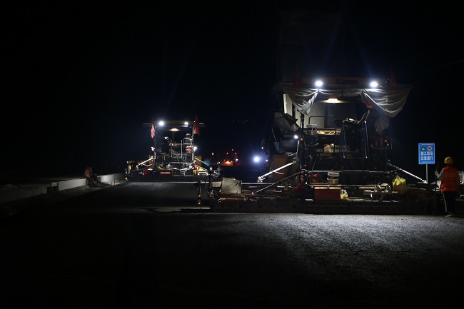 【奮戰勞動(dòng)競賽 獻禮百年華誕】路橋集團滁天高速04標順利完成全幅水穩下基層攤鋪工作