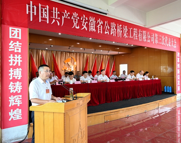 孫學(xué)軍代表建工控股黨委向大會(huì )的勝利召開(kāi)表示祝賀,向全體與會(huì )代表以及奮戰在各條戰線(xiàn)上的全體黨員干部職工致以親切問(wèn)候。他指出,過(guò)去的五年,安徽路橋黨委堅持以習近平新時(shí)代中國特色社會(huì )主義思想為指導,全面落實(shí)從嚴治黨要求,認真貫徹落實(shí)習近平總書(shū)記在國有企業(yè)黨建工作會(huì )議上的重要講話(huà)精神,在建工控股黨委的堅強領(lǐng)導下,團結帶領(lǐng)全體黨員干部職工,始終保持奮斗姿態(tài)、戰斗狀態(tài),全力搶抓發(fā)展機遇,有效應對風(fēng)險挑戰,準確定位發(fā)展方向,解放思想、把握大勢,積極拓展新市場(chǎng)、培育新業(yè)態(tài)、重組新架構、建立新機制,加快打造品質(zhì)路橋、卓越路橋,整體規模增長(cháng)迅速、轉型升級成效顯著(zhù)、企業(yè)核心競爭力不斷增強、國企擔當有力彰顯、黨的建設全面加強,實(shí)現了“十三五”圓滿(mǎn)收官、“十四五”高位起步,為集團整體上市及改革發(fā)展作出了積極貢獻。就開(kāi)好此次黨代會(huì )和推動(dòng)安徽路橋實(shí)現更好更快發(fā)展,孫學(xué)軍強調,要勇于擔當積極作為,奮力推動(dòng)公司持續高質(zhì)量發(fā)展;要弘揚偉大建黨精神,縱深推進(jìn)全面從嚴治黨;要嚴守政治紀律和政治規矩,確保大會(huì )取得圓滿(mǎn)成功。