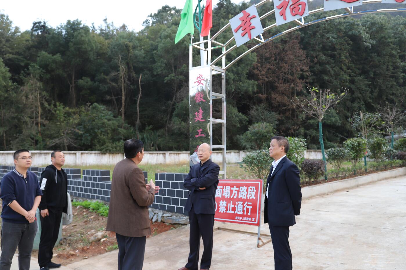 在趾鳳村,趙時(shí)運一行考察了丑橘產(chǎn)業(yè)園、幸福之家安置房項目。在聽(tīng)取扶貧工作隊隊長(cháng)、集團派駐趾鳳村第一書(shū)記鄭軍同志的匯報后,他對駐村工作隊取得的突出成績(jì)表示充分肯定,對駐村工作隊成員的辛勤工作表示親切慰問(wèn),尤其是對駐村工作隊員宮驚立在一線(xiàn)入黨的事跡給予了高度贊揚。