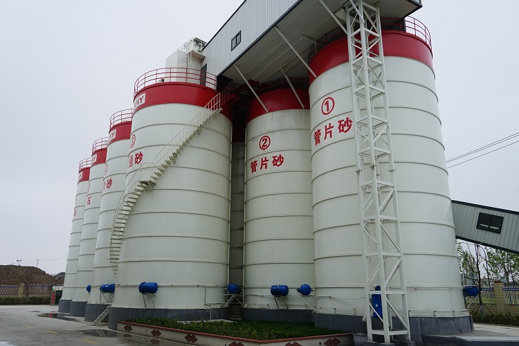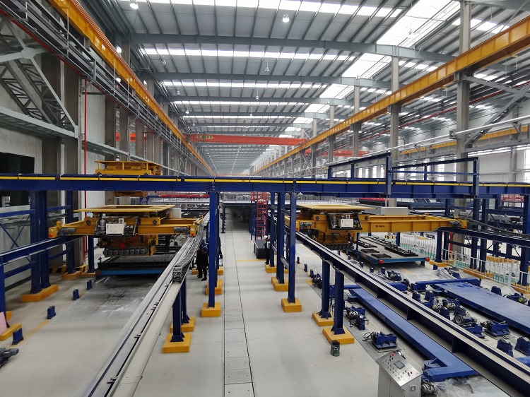 北城工業(yè)公司從整體到布局完成了生產(chǎn)工藝大改革。將傳統單一生產(chǎn)線(xiàn)采改為綜合構件生產(chǎn)流水線(xiàn),保證一線(xiàn)多類(lèi)構件同時(shí)生產(chǎn),實(shí)現了異形構件同點(diǎn)混凝土澆筑工藝;混凝土飛船從單線(xiàn)轉為雙線(xiàn)運輸,實(shí)現多線(xiàn)混凝土同時(shí)澆筑;養護窯更改為高倉位下沉式養護窯,充分利用地下空間,提高倉位空間使用率,單線(xiàn)實(shí)現同時(shí)養護57座模臺,并可實(shí)現異型構件進(jìn)窯護養護;考慮到廠(chǎng)區占地面積減少,為提高空間利用率,設計采用了大面積連通式鋼平臺,并配有帶軌道運輸車(chē),大大提高了材料存放、運輸效率;桁架筋自動(dòng)生產(chǎn)設備、網(wǎng)片自動(dòng)焊接生產(chǎn)設備、管片鋼筋自動(dòng)切割分揀彎弧設備,實(shí)現了鋼筋智能化加工?;炷翑嚢铏C從立軸攪拌改為雙臥軸攪拌,實(shí)現混凝土強制拌合;蒸汽養護從市政公用改為自有式多聯(lián)機組蒸汽發(fā)生器,靈活使用,節約成本;貨場(chǎng)桁吊由單梁改為雙梁懸臂吊,擴大吊運范圍,實(shí)現構件無(wú)障礙倒運。攪拌站擁有全封閉的上料系統,有9個(gè)骨料倉和2個(gè)輸送線(xiàn)組成,大噸位多組料倉可大量?jì)Υ嬖牧?,全封閉自動(dòng)上料系統,無(wú)粉塵,實(shí)現綠色環(huán)保。