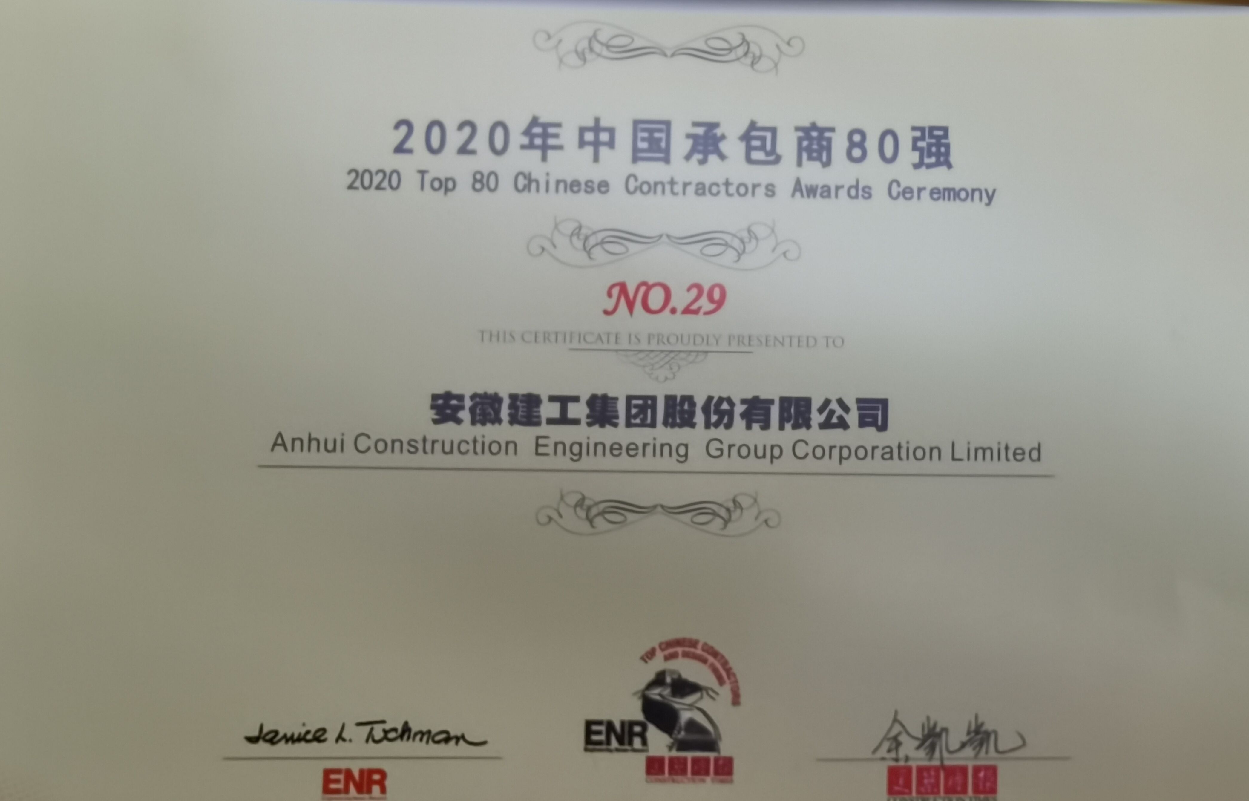 安徽建工集團連續多年榮獲“中國承包商80強”稱(chēng)號