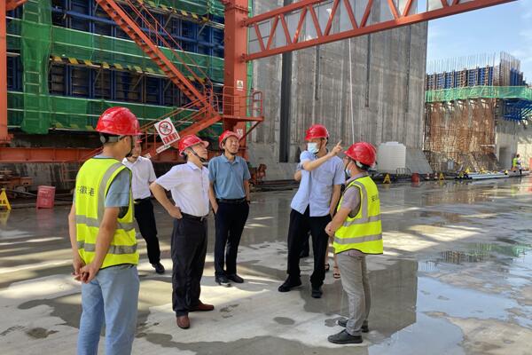 8月25日,建工控股黨委書(shū)記、董事長(cháng)趙時(shí)運赴安徽路港派河口船閘項目調研輕型移動(dòng)模機及信息化應用情況。