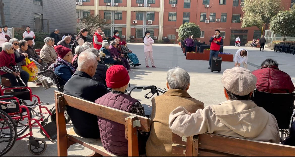 活動(dòng)現場(chǎng)志愿者們陪著(zhù)老人們做游戲、聊天談心,為老人們打掃庭院、表演才藝,并送上慰問(wèn)品。