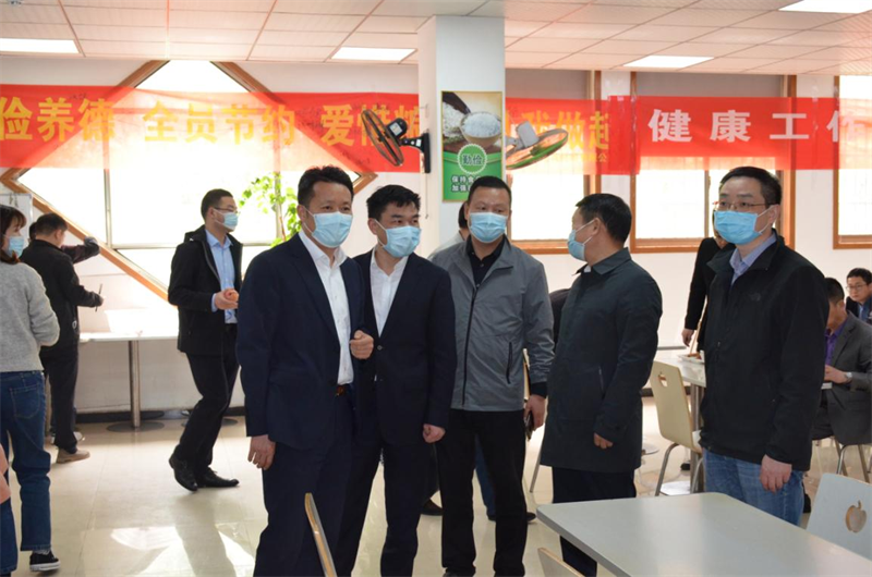 會(huì )后,包保督導組一行深入建材科技機關(guān)職工食堂實(shí)地查看衛生消毒、食材采購、錯峰就餐、后勤人員防護等情況。