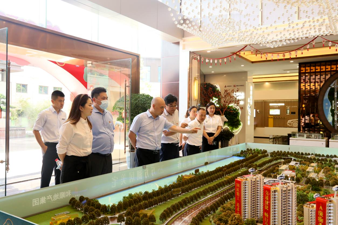 在銅陵,朱忠明一行實(shí)地察看了麓山樾項目施工現場(chǎng)和營(yíng)銷(xiāo)中心,聽(tīng)取了銅陵和順2022年上半年主要經(jīng)濟指標和重點(diǎn)工作完成情況的匯報。