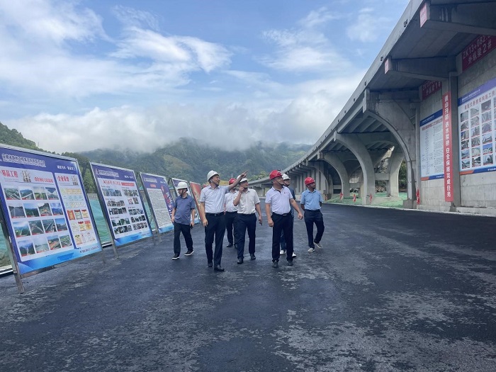 王汪苗一行實(shí)地查看了武陽(yáng)互通、傍山橋、蔡坑隧道等施工現場(chǎng),并在項目會(huì )議室主持召開(kāi)座談會(huì )。在聽(tīng)取項目有關(guān)“黨員先鋒號”創(chuàng )建等情況匯報后,王汪苗對項目部在工期緊、技術(shù)難度大及疫情影響等不利因素下所取得的成績(jì)給予肯定,對項目管理團隊在項目前期實(shí)施過(guò)程中展現出的攻堅克難、團結拼搏的良好面貌給予高度評價(jià)。