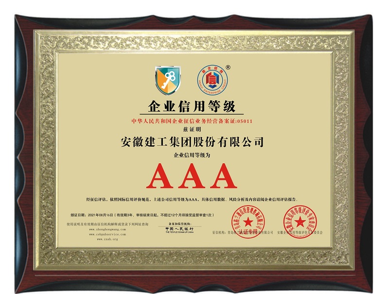 安徽建工作為省屬大型國有上市企業(yè),秉承“創(chuàng )造空間藝術(shù)、成就人文生活”的企業(yè)使命,堅守“誠信為本、敬業(yè)至上”的核心價(jià)值觀(guān),恪守“重合同、守信譽(yù)”和“質(zhì)量第一、用戶(hù)至上”的服務(wù)宗旨,強化信用體系建設,加強項目履約管理,樹(shù)立良好品牌形象,以人為本和諧發(fā)展。去年以來(lái)獲評中國建筑業(yè)協(xié)會(huì )“建筑業(yè)AAA級信用企業(yè)”、中企聯(lián)“2020年第一批AAA級信用企業(yè)”“中國承包商80強”“納稅信用A級納稅人”等,在合肥市建筑企業(yè)信用綜合評價(jià)中獲施工總承包房建專(zhuān)業(yè)AAA級和市政專(zhuān)業(yè)AA級。