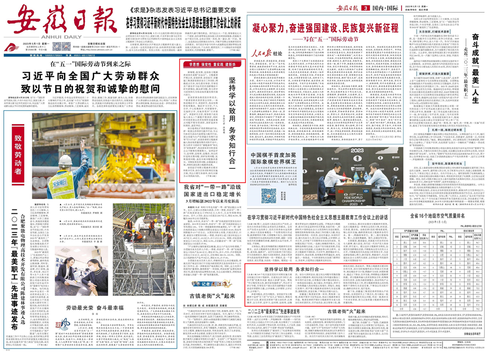 5月1日,安徽日報以《堅持學(xué)以致用 務(wù)求知行合一》為題關(guān)注報道安徽建工集團主題教育開(kāi)展情況。以下是報道部分內容: