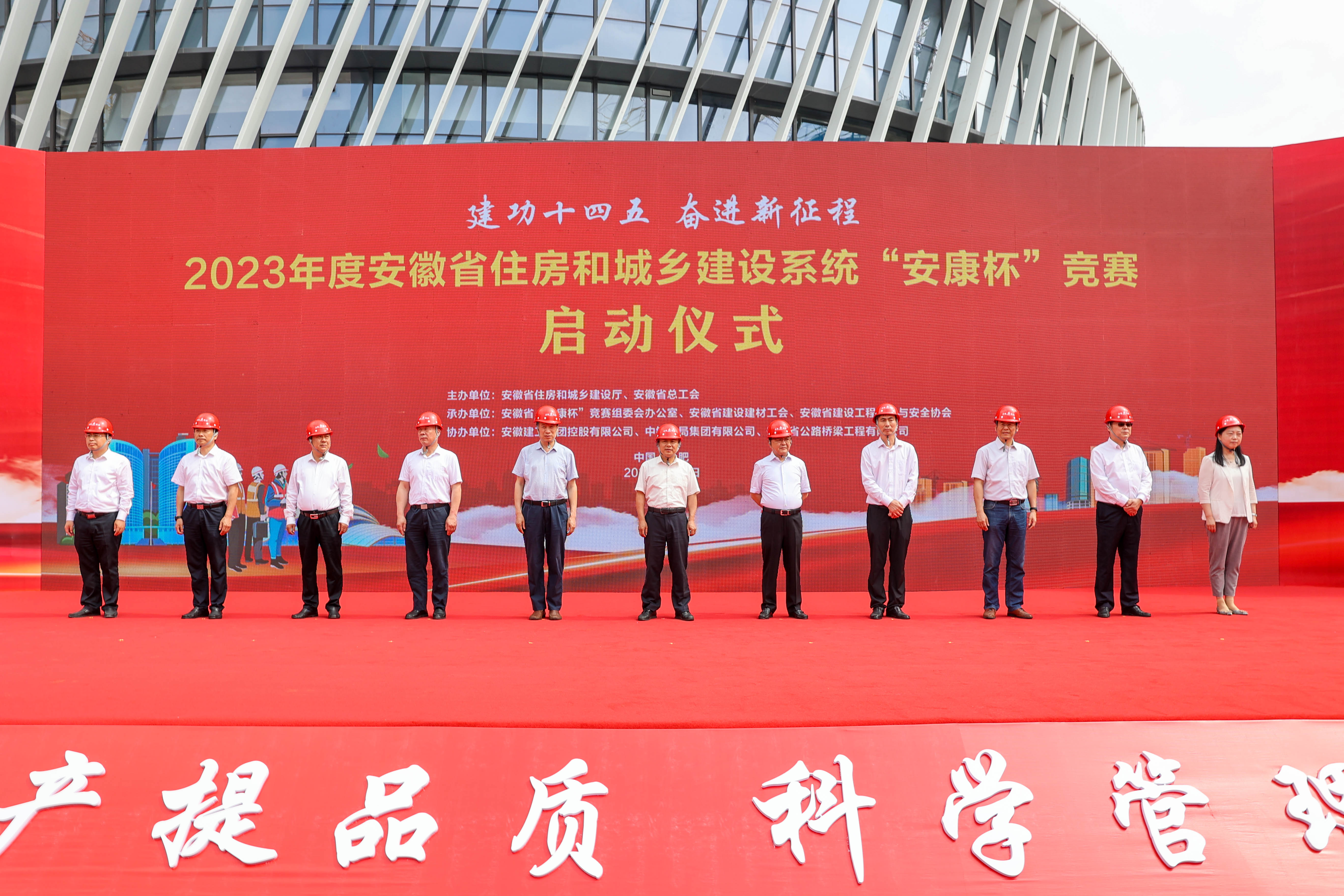 6月6日上午,由安徽省住房和城鄉建設廳、安徽省總工會(huì )主辦,安徽建工集團控股有限公司、安徽省公路橋梁工程有限公司協(xié)辦的2023年度安徽省住房和城鄉建設系統“安康杯”競賽啟動(dòng)儀式在安徽路橋桃花科創(chuàng )產(chǎn)業(yè)園EPC項目現場(chǎng)舉行。安徽省住房和城鄉建設廳二級巡視員王曉魁作競賽動(dòng)員講話(huà),安徽省總工會(huì )黨組成員、副主席陳金紅宣布競賽啟動(dòng)。建工控股黨委委員、副總經(jīng)理孫學(xué)軍,肥西縣人民政府副縣長(cháng)權家柱分別致辭。