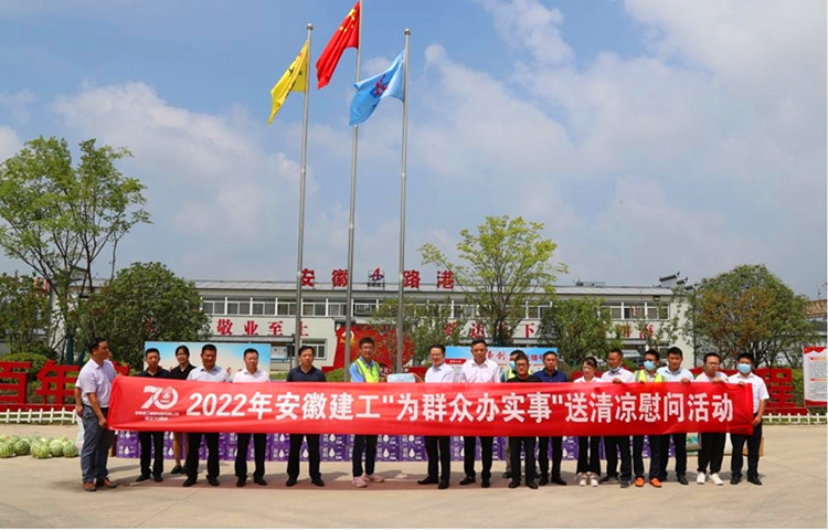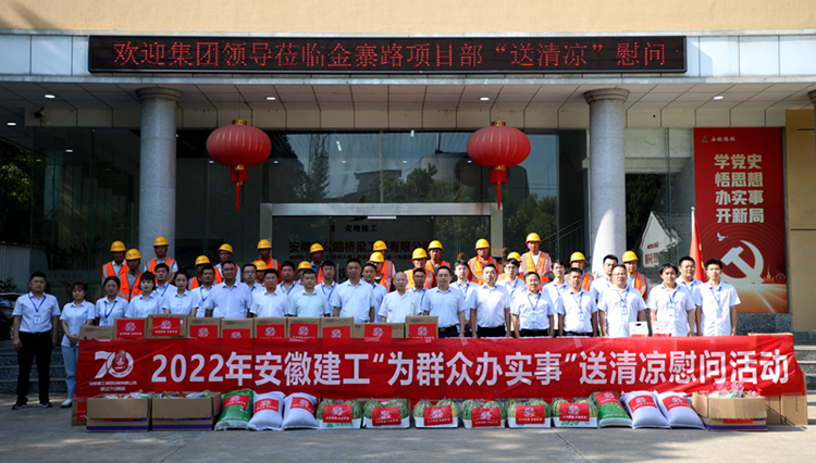 在安徽路橋金寨路項目,集團黨委書(shū)記、董事長(cháng)趙時(shí)運將慰問(wèn)品送到一線(xiàn)職工手中,并和大家親切交談,細致了解大家的生活工作情況,叮囑要注意勞逸結合,做好防暑降溫工作。慰問(wèn)中,他要求,要深入貫徹落實(shí)習近平總書(shū)記關(guān)于安全生產(chǎn)的重要指示精神,嚴格落實(shí)高溫天氣作業(yè)時(shí)間要求,進(jìn)一步壓實(shí)“五落實(shí)五到位”安全生產(chǎn)主體責任,加強對防暑降溫等工作的組織領(lǐng)導、措施落實(shí),以安全高效工作成果迎接黨的二十大和建企70周年。