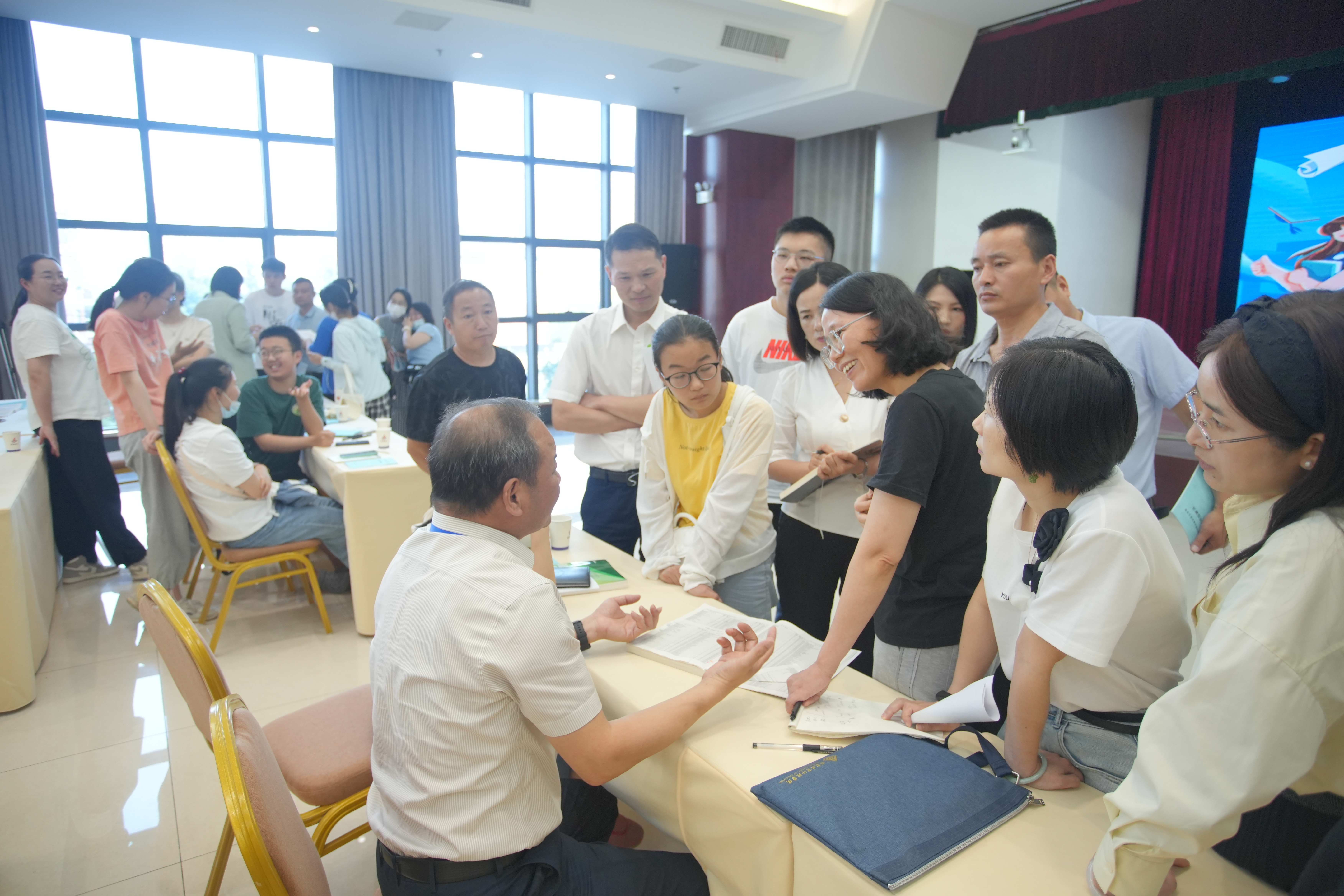 何屹松主任就平行志愿及投檔規則、志愿填報途徑及要求等進(jìn)行了詳細解讀。隨后,四位專(zhuān)家走到職工中,現場(chǎng)接受家長(cháng)和考生咨詢(xún),熱情、耐心、細致地進(jìn)行講解和交流。兩個(gè)小時(shí)的輔導和面對面的解答,幫助考生和家長(cháng)更加清晰了解了志愿填報與錄取規則方面的注意事項,為家長(cháng)和考生理清了思路,大大緩解了選擇志愿的焦慮情緒,有關(guān)方面的建議與參考讓家長(cháng)和考生在填報志愿時(shí)更加明智、更有信心?,F場(chǎng)氣氛熱烈、互動(dòng)良好,獲得職工一致好評。
