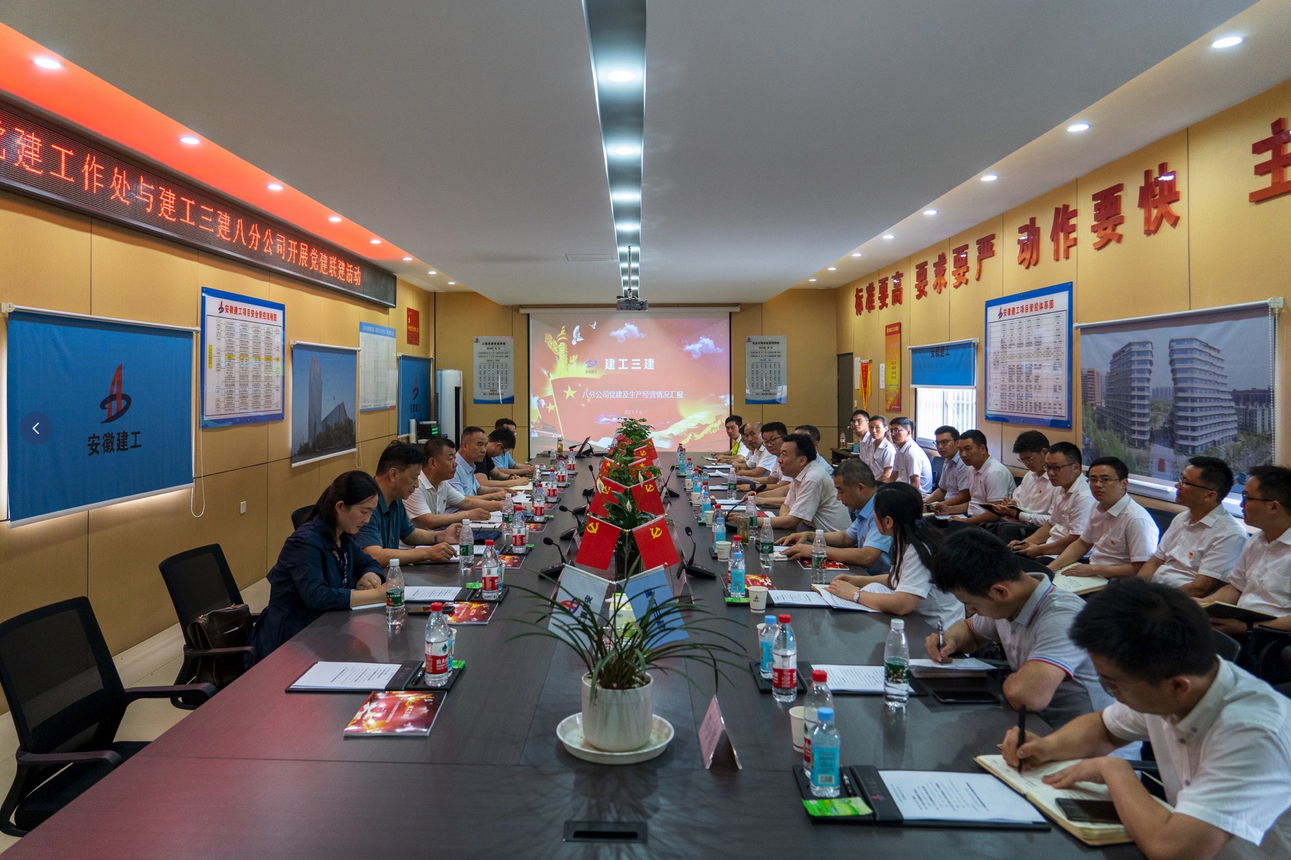 為深入貫徹落實(shí)主題教育工作要求,創(chuàng )新基層黨建工作載體,構建雙向促進(jìn)、共同提高的黨建工作格局,7月6日,省國資委黨建工作處黨支部走進(jìn)建工三建八公司大圩金葡萄家園二期2-A和2-B地塊工程項目,開(kāi)展黨建聯(lián)建活動(dòng)。省國資委黨建工作處處長(cháng)、黨支部書(shū)記段海出席并講授專(zhuān)題黨課。建工控股黨委委員、紀委書(shū)記、監察專(zhuān)員王汪苗參加活動(dòng)。