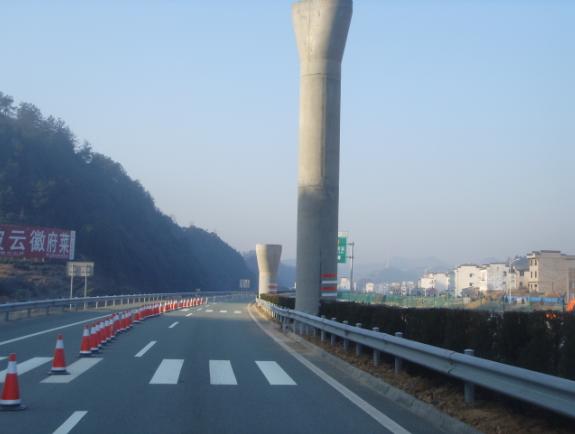 本交叉工程第一階段的施工先后經(jīng)歷了徽杭高速交通安保專(zhuān)家評審、徽杭高速道路封閉、徽杭高速中分帶拆除與光纜保護、兩樁基挖孔和鉆孔、中分帶和標線(xiàn)改線(xiàn)、樁檢、接樁、立柱、墩帽等施工工序。為確保在規定的時(shí)間內完成施工任務(wù),安徽路港績(jì)黃06標項目部通過(guò)精心施工、科學(xué)安排工期,許多施工工序安排甚至以小時(shí)計算。