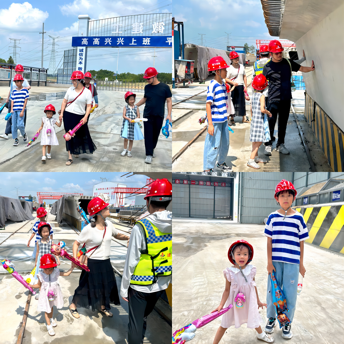 在父母的帶領(lǐng)下,“小候鳥(niǎo)”們戴上安全帽走進(jìn)了“工地大課堂”,實(shí)地參觀(guān)了S18寧合高速04標項目施工現場(chǎng)、辦公區與生活區,“零距離”感受了父母的工作環(huán)境,深刻認識到了工作的艱辛不易,并為他們扎根一線(xiàn)、艱苦奮斗而感到驕傲與自豪。