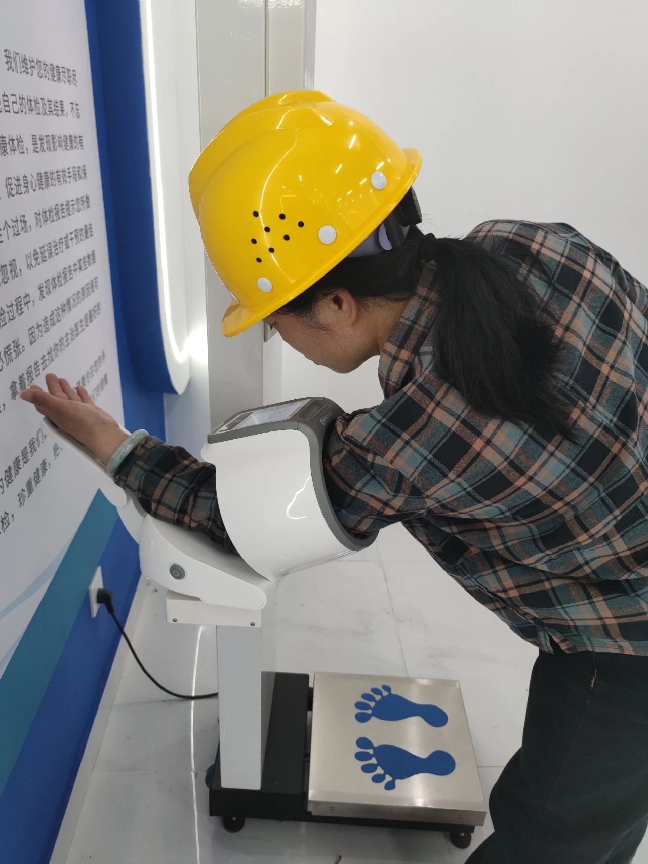 鳳凰山水庫樞紐工程項目部配備了健康體檢儀,可測量身高、體重、體脂肪率,還能檢測血壓等生理指標,幫助員工了解自身身體狀況,及時(shí)察覺(jué)潛在健康問(wèn)題。血壓、體脂隨時(shí)測,健康檔案云端存!