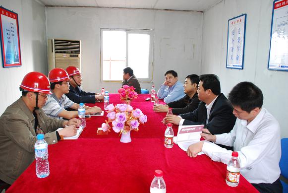 胡董事長(cháng)(右三)聽(tīng)取省安裝公司合肥中心醫院項目部的工作匯報