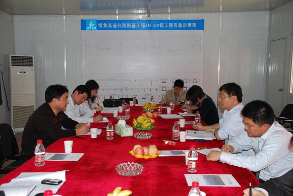 胡董事長(cháng)(左一)聽(tīng)取省路橋公司及績(jì)黃高速02標項目部工作匯報