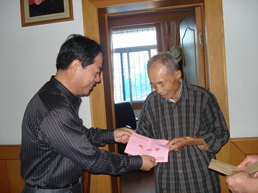 在中華人民共和國成立60周年到來(lái)之際,集團公司副董事長(cháng)李長(cháng)斌率領(lǐng)集團辦公室主任陳萍、安徽建機公司黨委書(shū)記王愛(ài)國等一行6人,于9月23日上午驅車(chē)前往安徽建機公司離休老干部——新四軍老戰士稽友三同志家中看望和慰問(wèn)。李長(cháng)斌副董事長(cháng)非常關(guān)心稽老的身體健康和生活情況,和老人親切交流,噓寒問(wèn)暖,代表集團公司和集團黨委向稽老送去慰問(wèn)信、慰問(wèn)金,并送上節日的關(guān)懷和祝福。