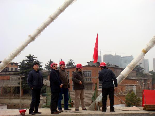 戴總一行參觀(guān)了大橋南岸主橋施工現場(chǎng)。在聽(tīng)取了項目部江仲明經(jīng)理對前期工作和當前施工進(jìn)展情況的匯報后,戴總對項目部工作給予了高度評價(jià),同時(shí)提出了更高的要求,希望該部繼續努力,再上新臺階。隨后,戴總一行還登上了主橋橋面,實(shí)地察看了正在緊張進(jìn)行的主橋前支點(diǎn)掛藍施工,親切慰問(wèn)了冒著(zhù)嚴寒戰斗在一線(xiàn)的現場(chǎng)施工工人和技術(shù)人員,并就主橋完成后如何拆除前支點(diǎn)掛藍提出了指導性的方案。