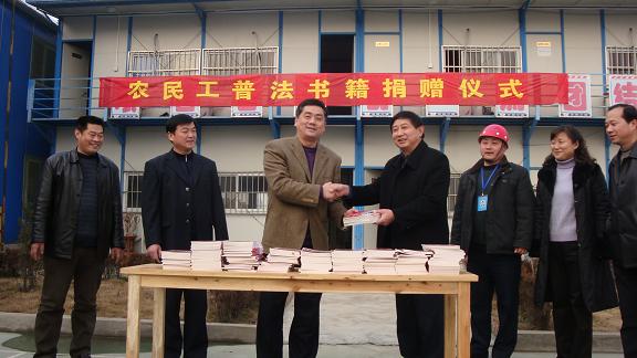 2010年元月28日下午,合肥市人民檢察院向安徽建工農民工業(yè)余學(xué)校捐贈農民工普法書(shū)籍儀式在安徽三建美亞光電項目部舉行。市檢察院黨組成員、副檢察長(cháng)黃世斌,黨組成員、政治部主任童興芝等一行四人,看望慰問(wèn)農民工兄弟,宣傳農民工法律維權知識,并現場(chǎng)捐贈《農民工普法讀本》200本。集團公司副總經(jīng)理、集團農民工業(yè)余學(xué)校常務(wù)副校長(cháng)王禮義,集團人力資源部主任胡建英,安徽三建紀委書(shū)記周湃等出席捐贈儀式。