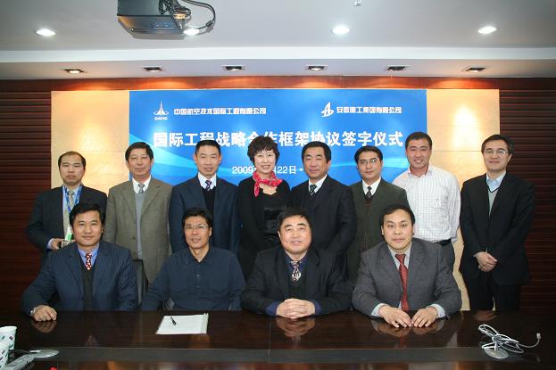 The president of ACEG Mr.Hu Yuncheng signed the framework agreement of strategic cooperation with the president of China National Aero-Technology International Engineering Company Mr. Liu Rongchun in Beijing on 22 February 2009. Both sides agreed to advance the all-round cooperation in international market, especially in Africa such as Algeria where both companies can realize the mutual complementarities and sharing the benefits and risks and mutual benefits and win-win. Both companies will take a certain project as the beginning of cooperation and then gradually shift to the all-round strategic cooperation.