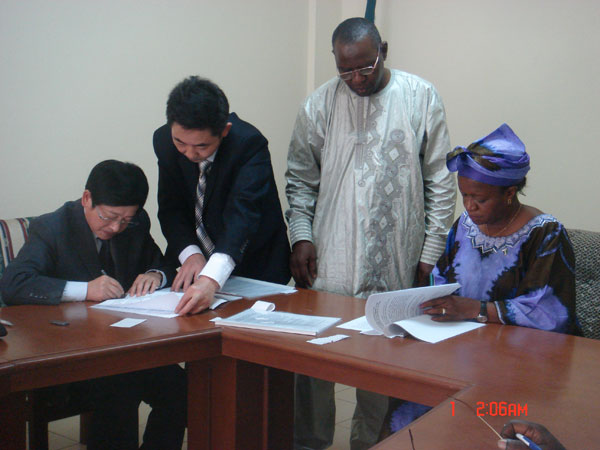 On 27 February 2009, Mr. Chengjin, Vice General Manager and General Engineer from Overseas Development Company ACEG, went to Sierra Leone together with his parties and signed the Contract for the aided hospital project with the Sierra Leone representative in the office building of the Ministry of Foreign Affairs of Sierra Leone. Mr. Wang Haitao, the Chinese Counselor to Sierra Leone, Secretary Mr. Zhang Peng, Secretary Mr. Cai Yue from the Economic and Commercial Counselor’s Office and Ms. Banggula, the Foreign Minister of Sierra Leone and other 4 members of delegation of Sierra Leone attended the signing ceremony.