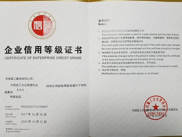 The meeting honored the "construction integrity typical enterprises" of 2017, and released the list of AAA enterprises in social credit evaluation. ACEG and its subsidiaries Anhui Road & Bridge Group Co.,Ltd, Anhui Road & Bridge Engineering Co. Ltd. have been awarded AAA credit enterprise which fully affirmed the group''s performance in the credit management, showing the determination of positive response to the country''s comprehensive implementation of credit system construction decision and deployment and undertaking the new mission of credit construction. The successful evaluation of AAA credit enterprises will play an active role in the future development of the Group.