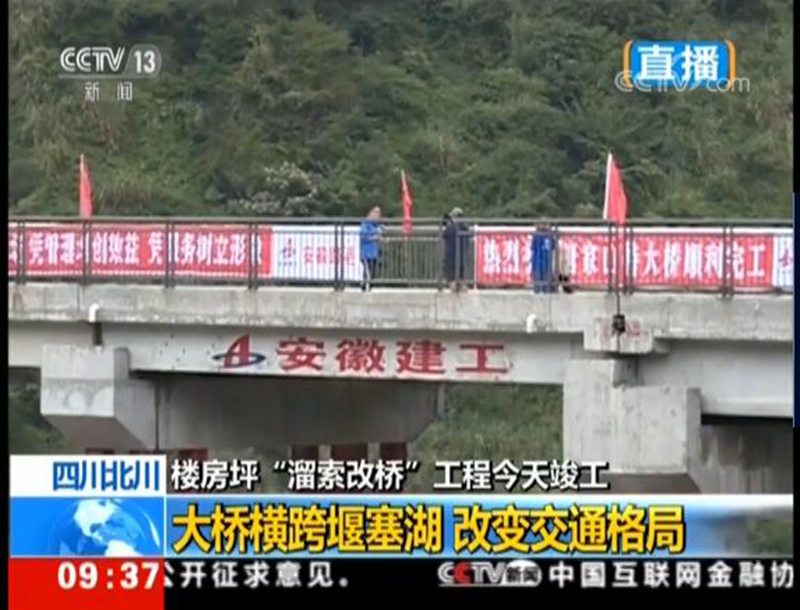 On September 1, the project of the bridge across Tangjiashan Quake Lake in Beichuan County, Western China''s Sichuan Province, was completed by Anhui Road And Port Construction Co., Ltd. - a subsidiary of ACEG, professional for road / bridge and port engineering and construction. “CCTV NEWS – LIVE” and "Oriental Time and Space" - core news columns of China Central Television (CCTV) have reported this event successively.