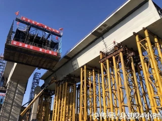 Incremental launching tech with walking jacks were used to position the huge gantries - the steel box girders are lifted to the brackets and welded into one piece and then pushed horizontally across the viaduct and then the lifting and welding of other sections of the steel box girders at both ends put into effect. All parts and element units were pre-made in the factory yard and delivered to the worksite before the erection. The first four segments were hoisted onto the brackets and assembled as a whole, a 20-meter steel guiding beam was installed and the fifth segment was hoisted and welded in place after being pushed forward for a certain distance with two 300 t truck cranes.